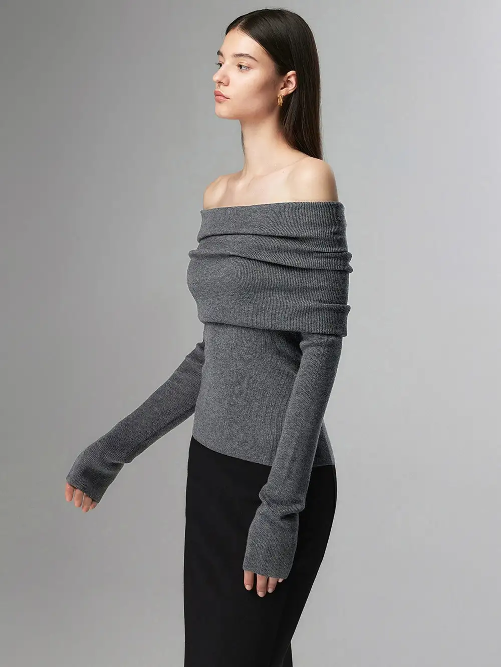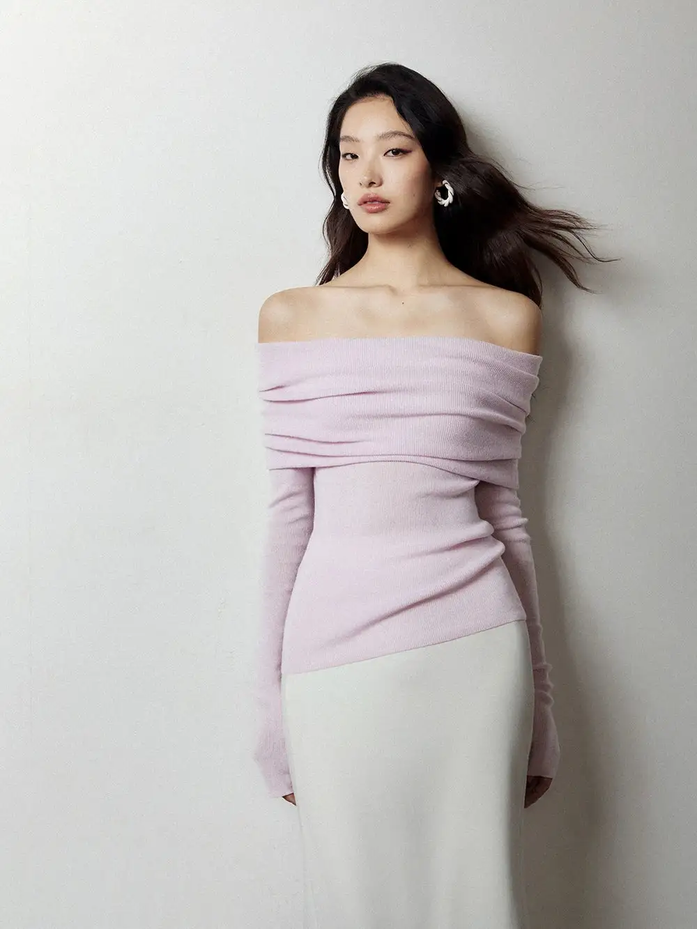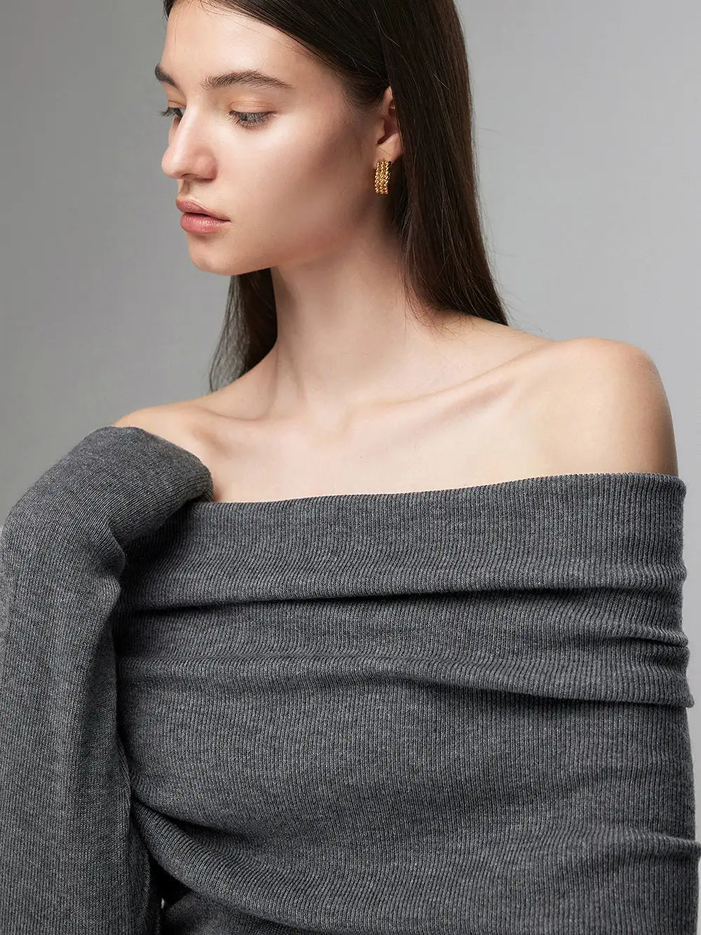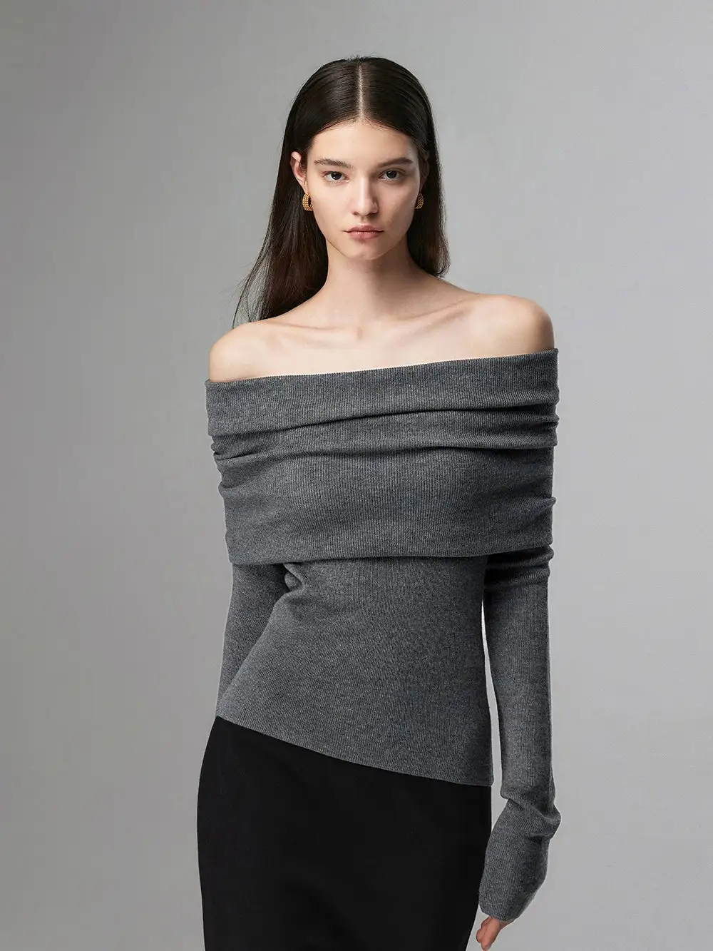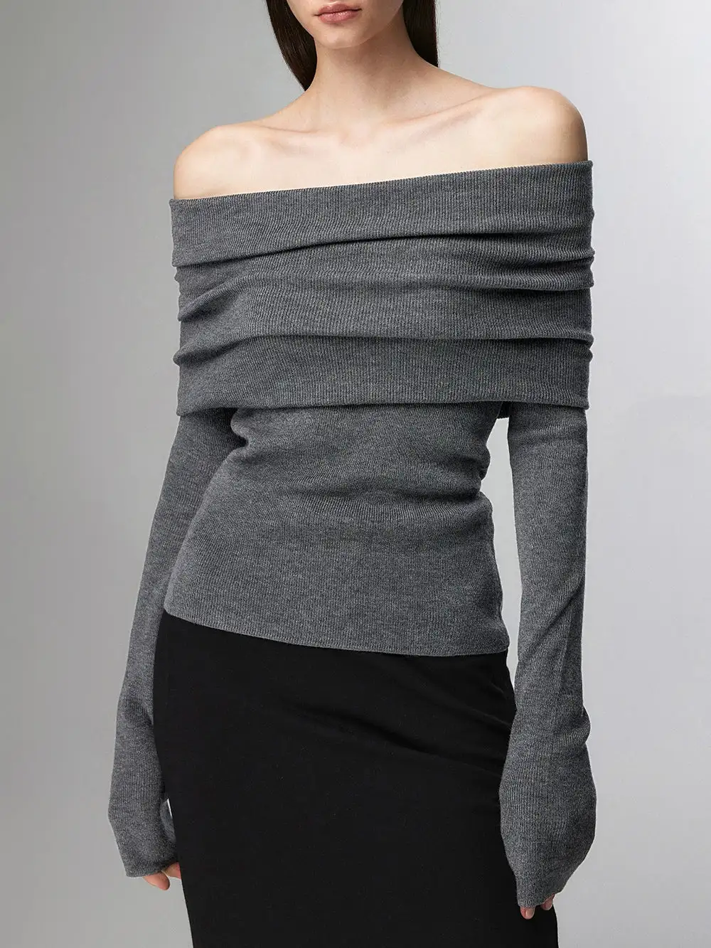 Embrace effortless elegance with our Off-Shoulder Ribbed Knit Layered Long Sleeve Sweater Top, a versatile piece that sets the tone for a nonchalant yet sophisticated look.