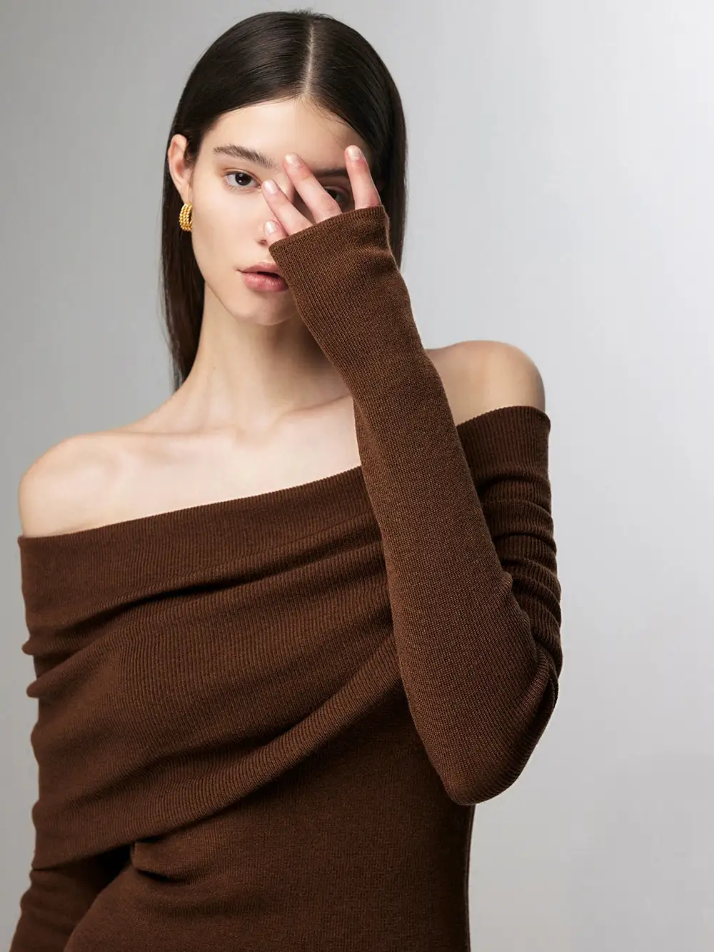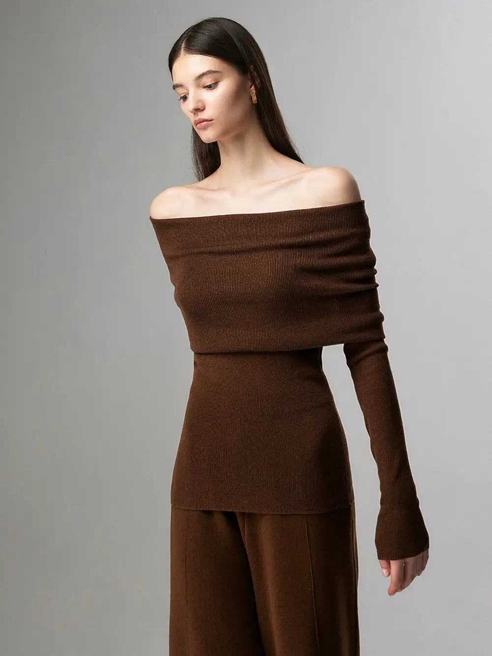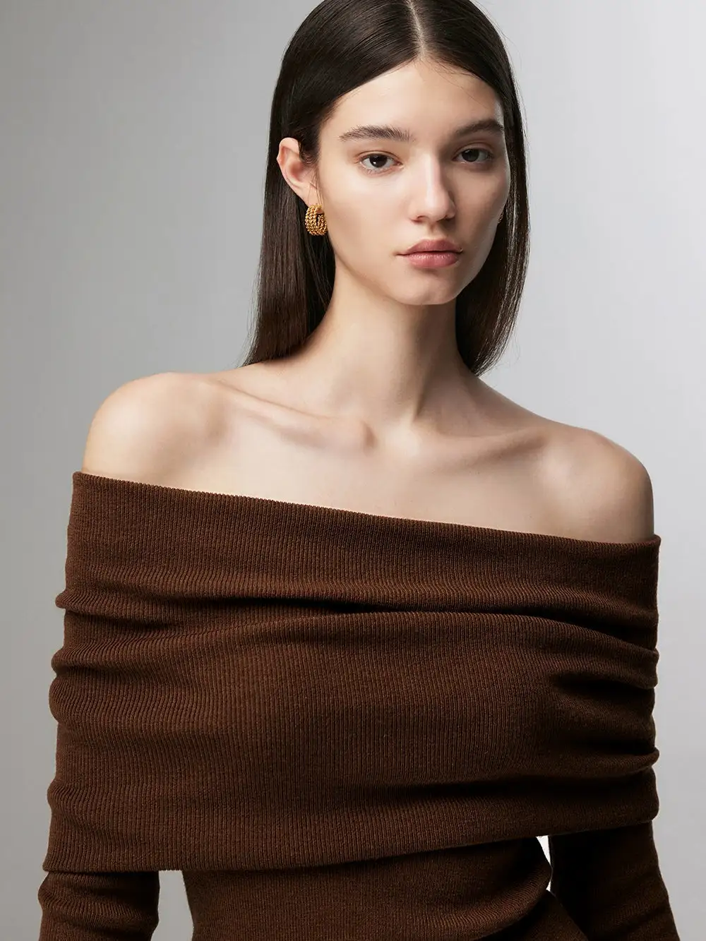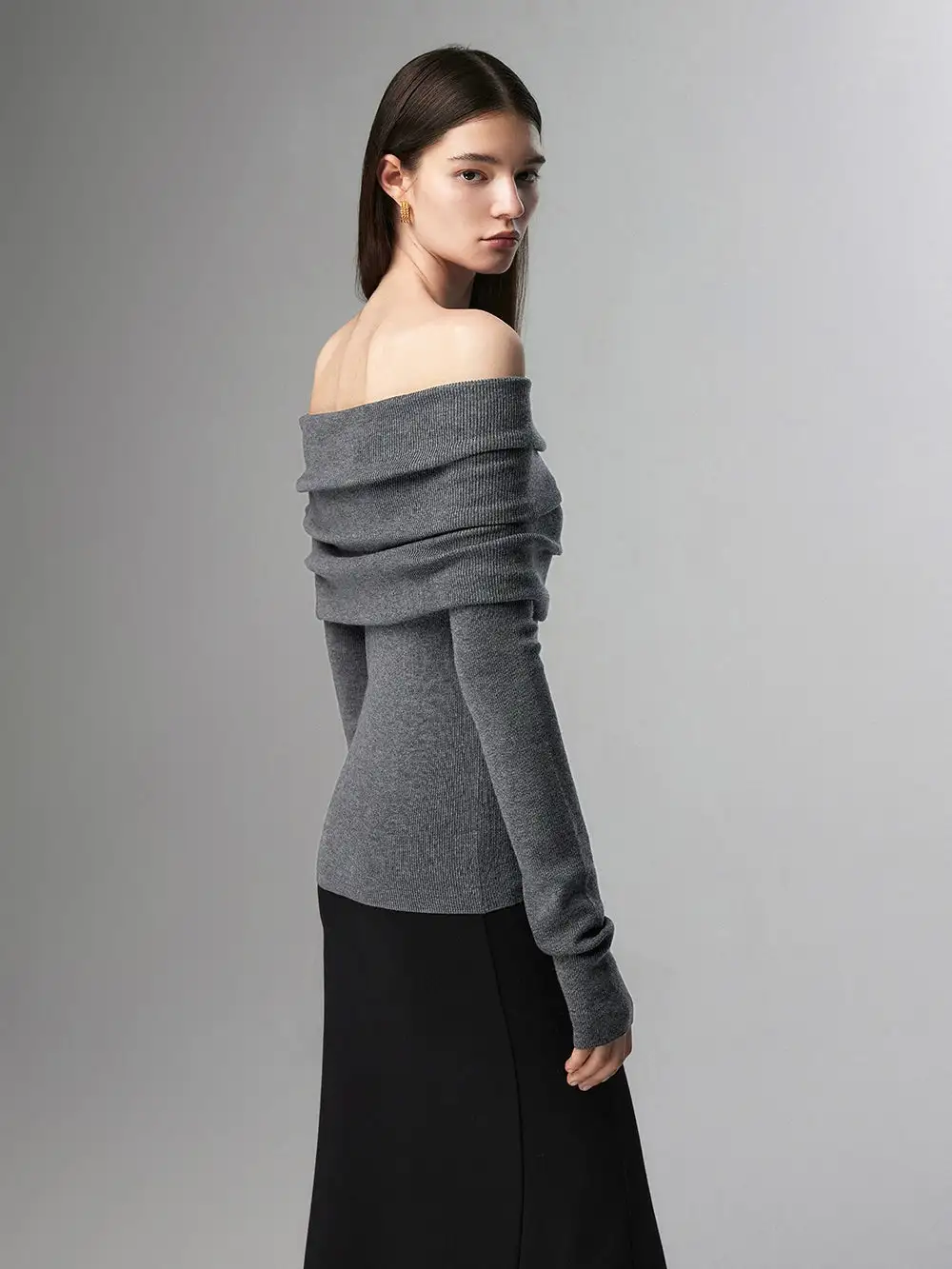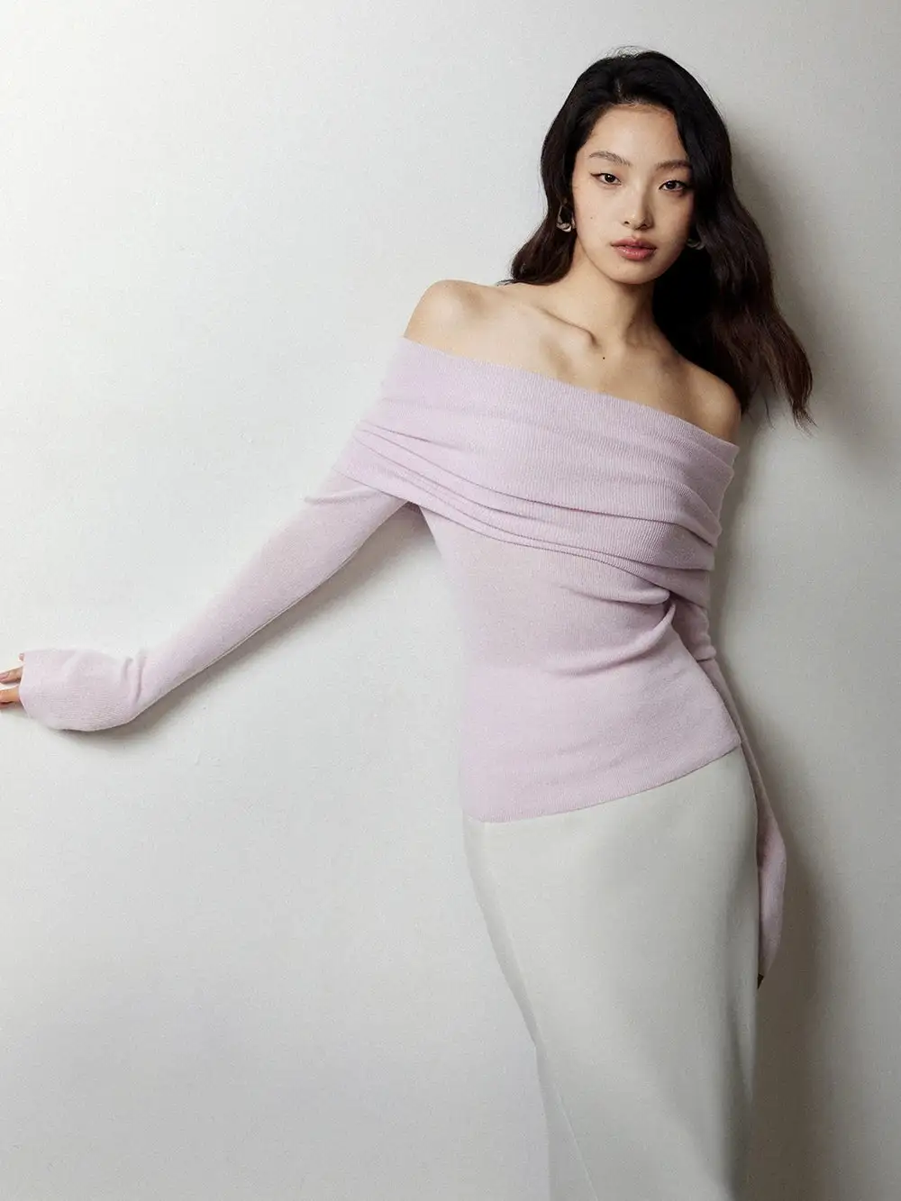 Embrace effortless elegance with our Off-Shoulder Ribbed Knit Layered Long Sleeve Sweater Top, a versatile piece that sets the tone for a nonchalant yet sophisticated look.