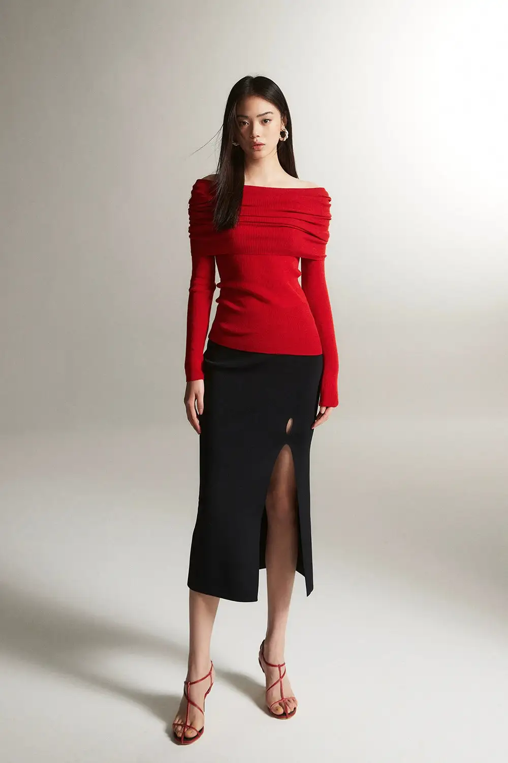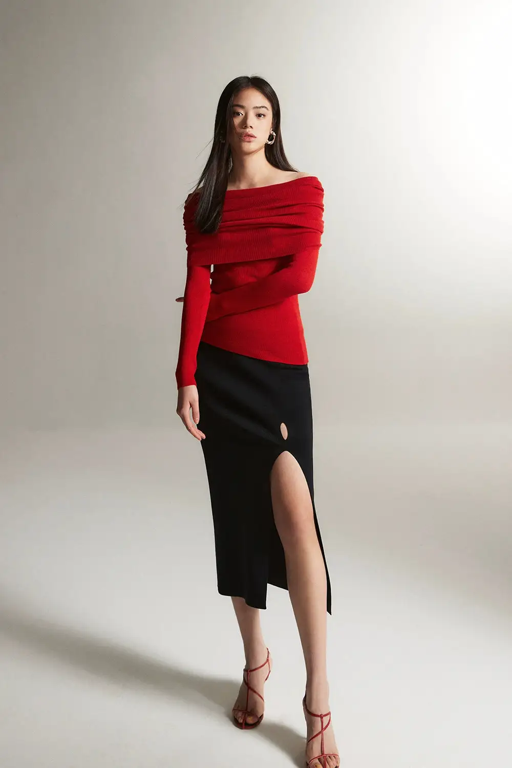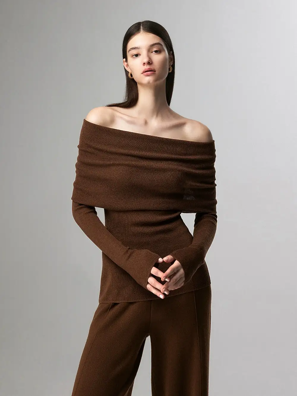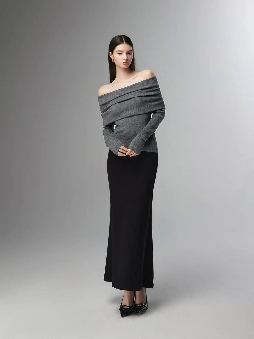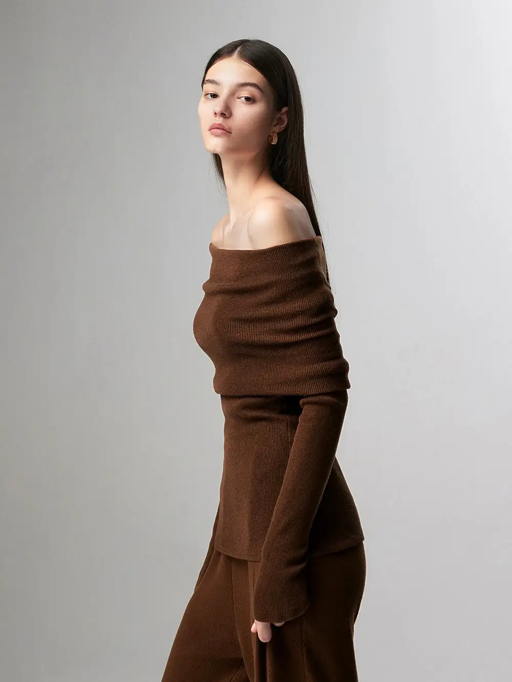 Embrace effortless elegance with our Off-Shoulder Ribbed Knit Layered Long Sleeve Sweater Top, a versatile piece that sets the tone for a nonchalant yet sophisticated look.