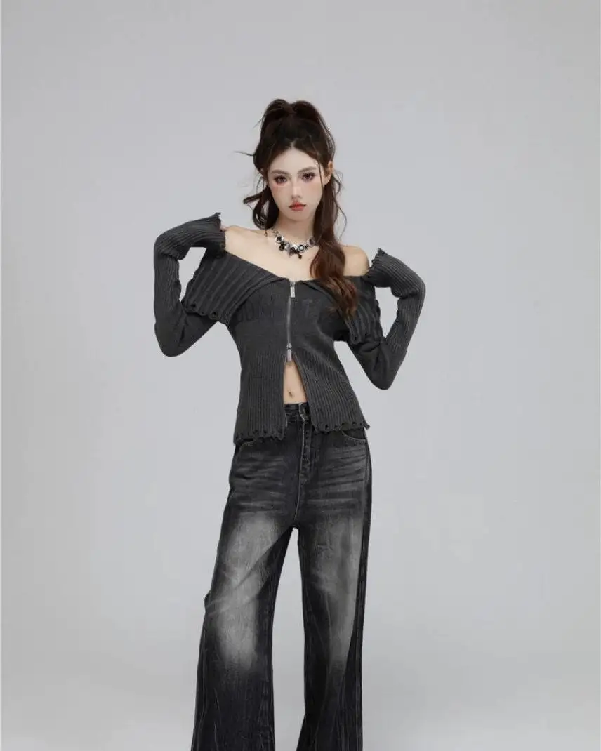 Embrace effortless style with our Off-Shoulder Ribbed Knit Print Zip Sweater, a piece that marries comfort with chic. Its unique ribbed texture and off-shoulder zip design offer an edge to your everyday look, making it a versatile addition to any wardrobe. Ideal for those seeking a sophisticated yet relaxed vibe, this sweater is a subtle statement piece that transcends seasons.