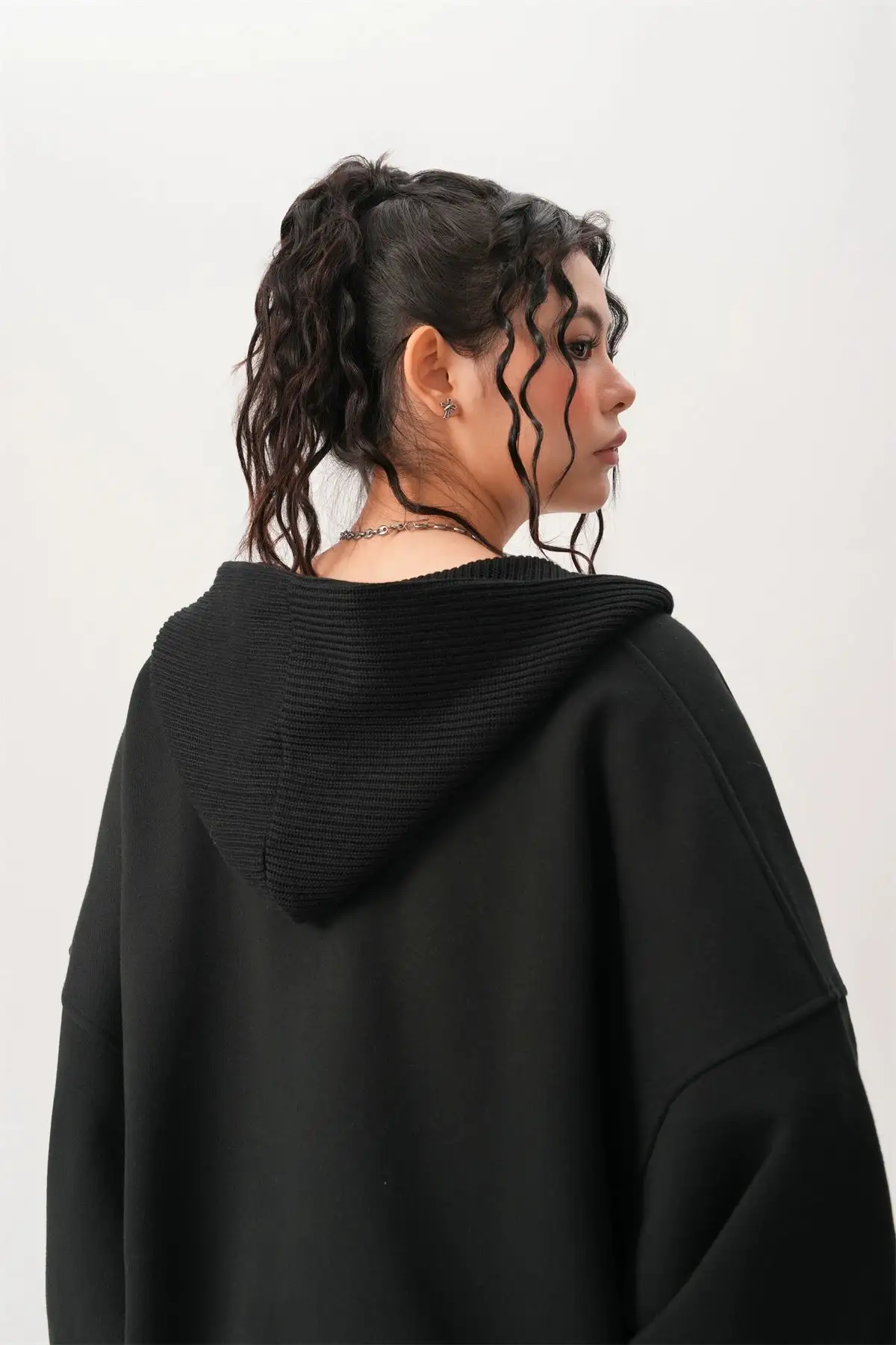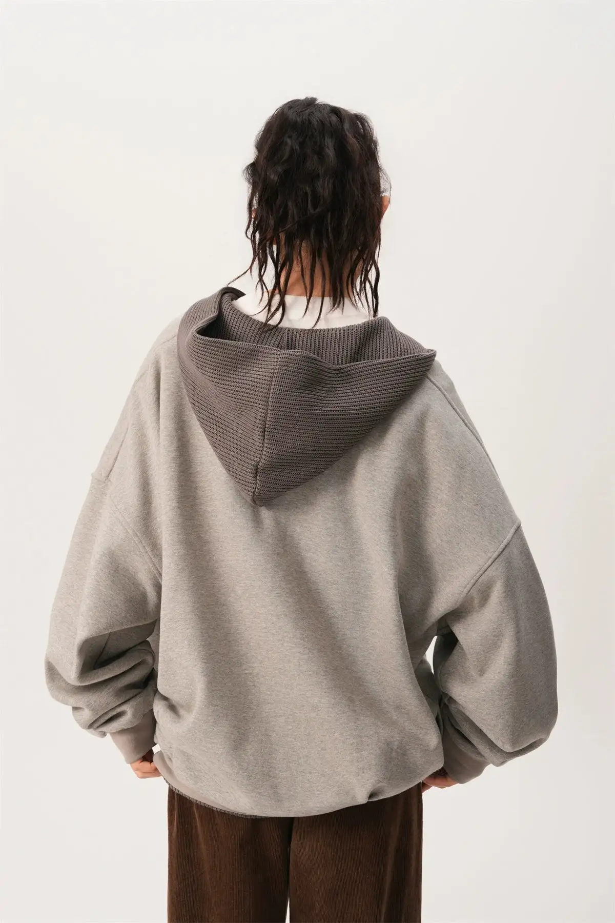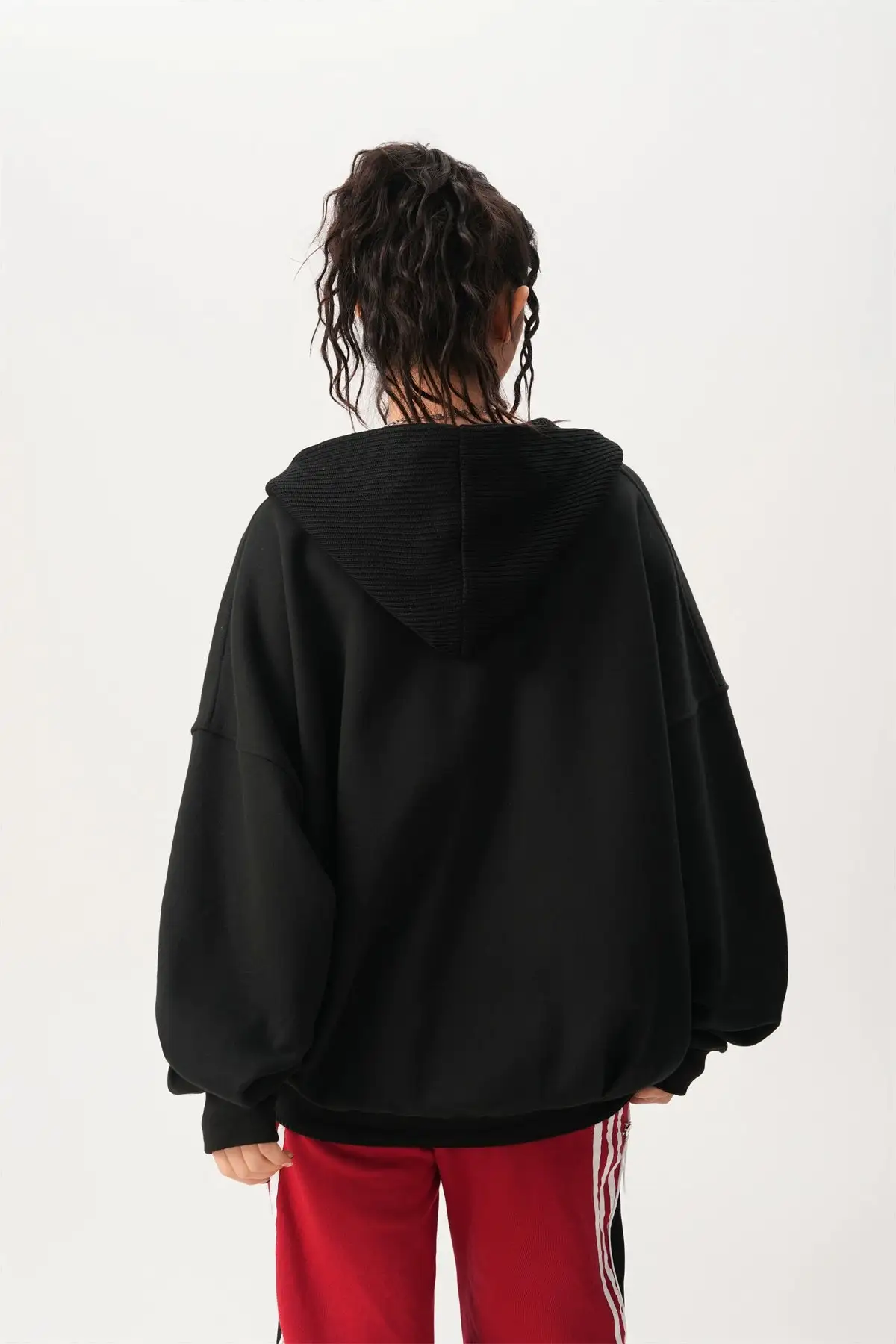 With its loose silhouette and textured ribbed details, this hoodie embodies a laid-back yet chic aesthetic. Crafted from a soft blend of 65% cotton and 35% polyester, it offers a cozy and durable feel while maintaining breathability.