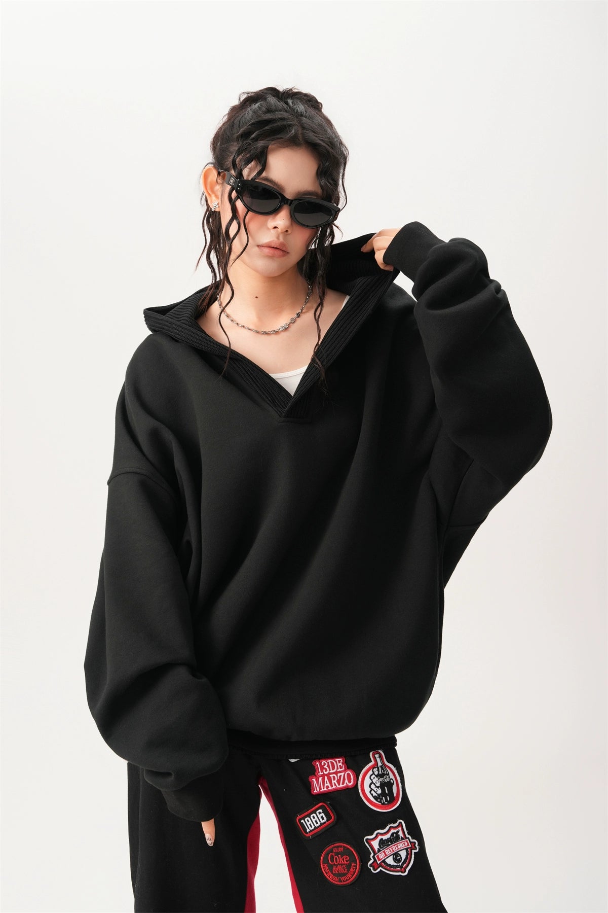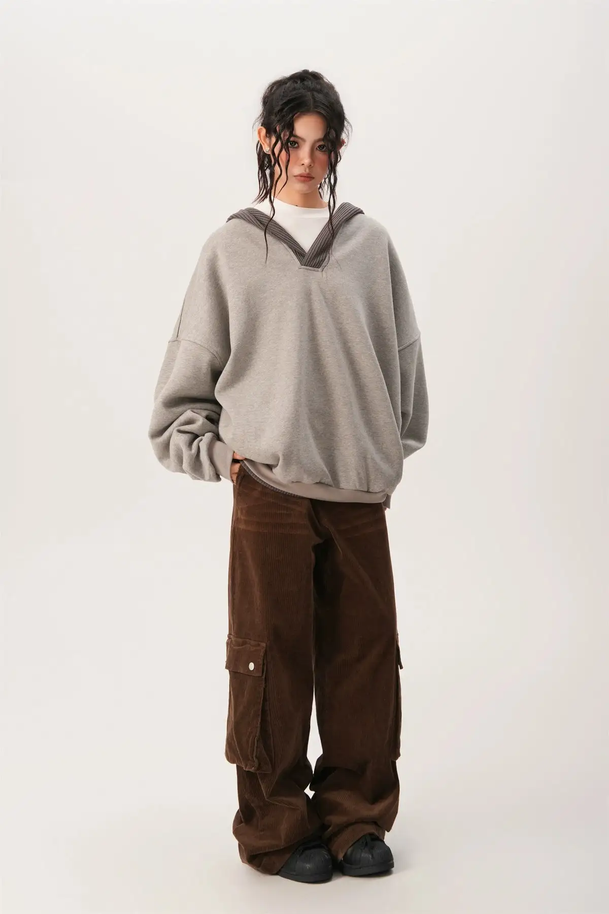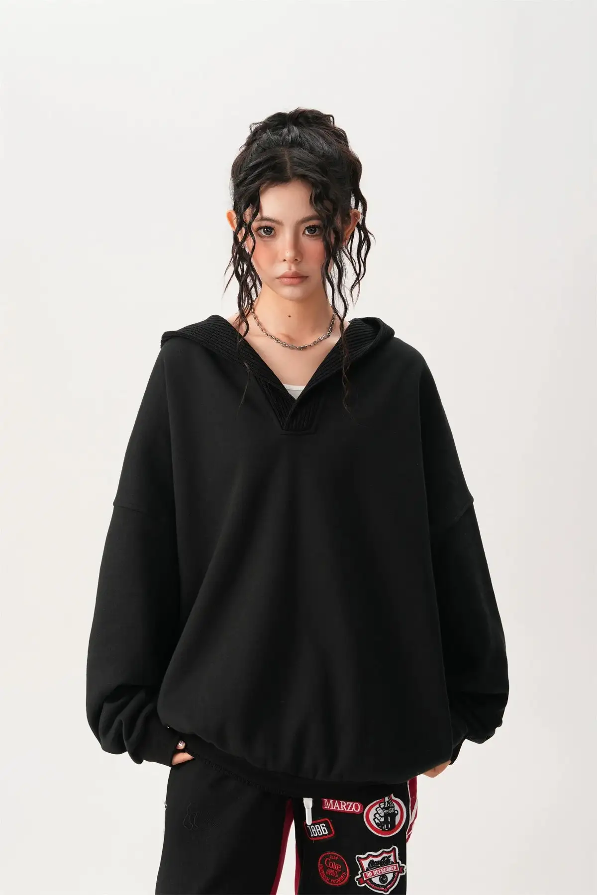 With its loose silhouette and textured ribbed details, this hoodie embodies a laid-back yet chic aesthetic. Crafted from a soft blend of 65% cotton and 35% polyester, it offers a cozy and durable feel while maintaining breathability.