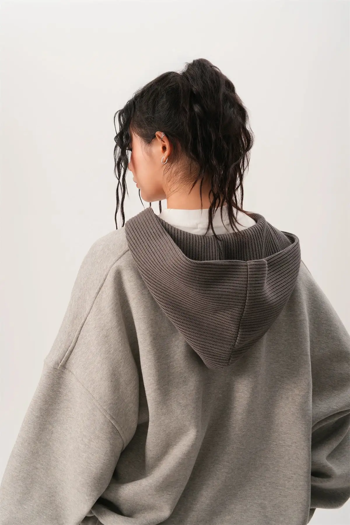 The Oversized Knit Ribbed Heathered Hoodie is the perfect mix of comfort and understated edge, designed to elevate your everyday style with ease.