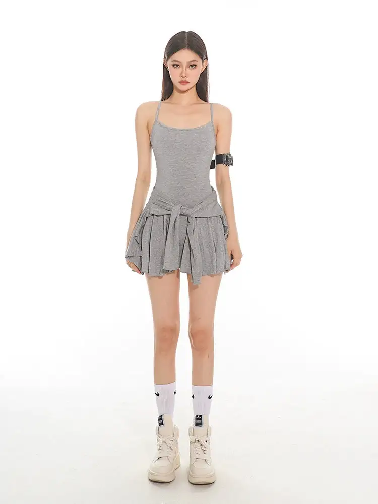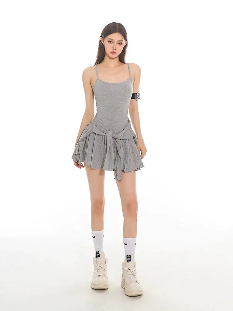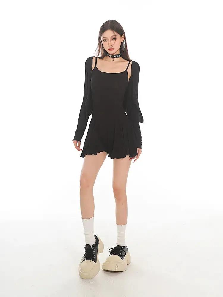 Made from soft, quality fabric, the set features a sleeveless crop top and high-waisted pleated shorts, complemented by a lightweight fitted cardigan that adds a touch of elegance to this casual look. The retro-inspired design and slim fit silhouette combine fashion with function, creating a versatile outfit that's easy to style.