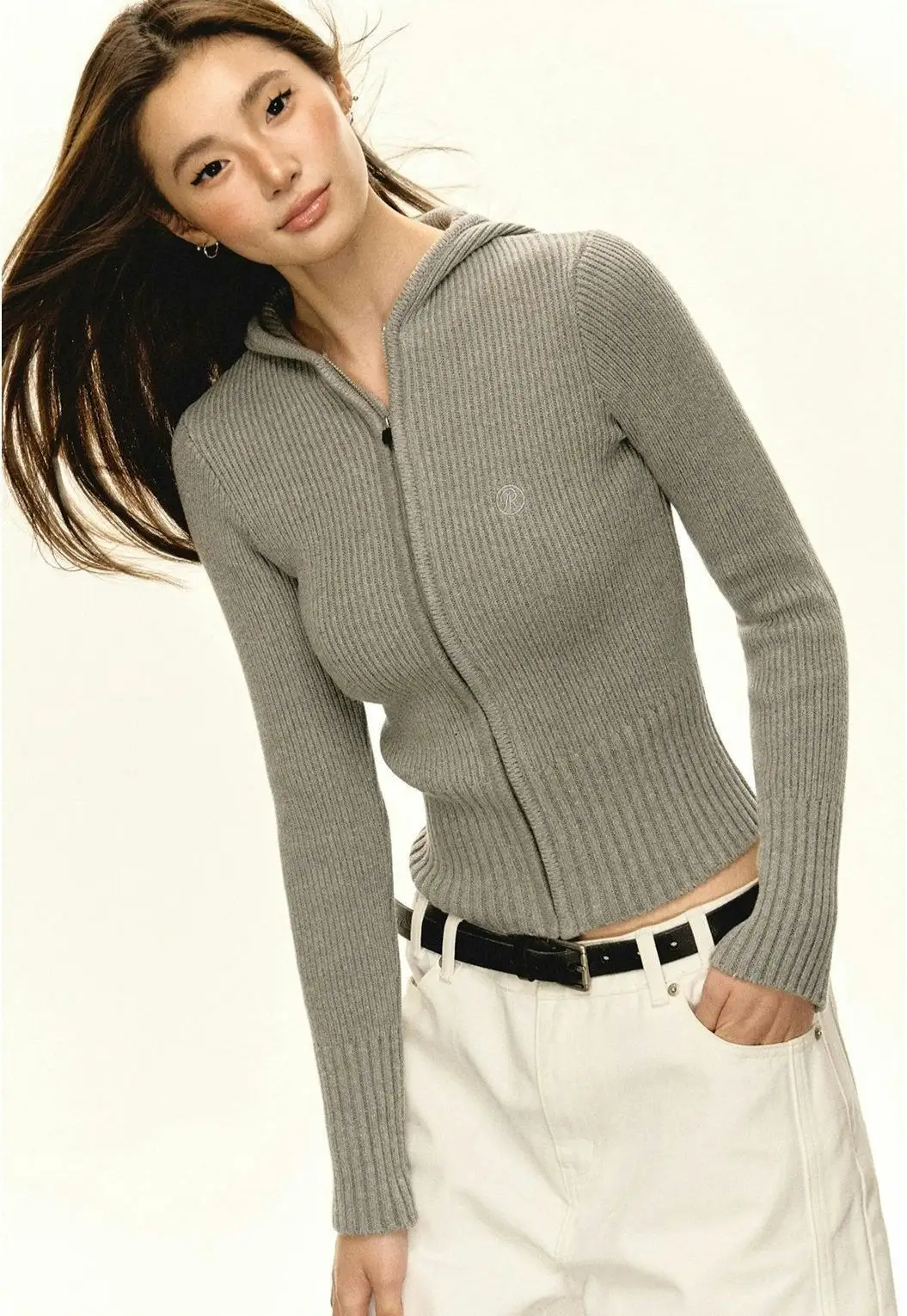 Experience cozy sophistication with our Slim Ribbed Zip-Up Hooded Sweater.